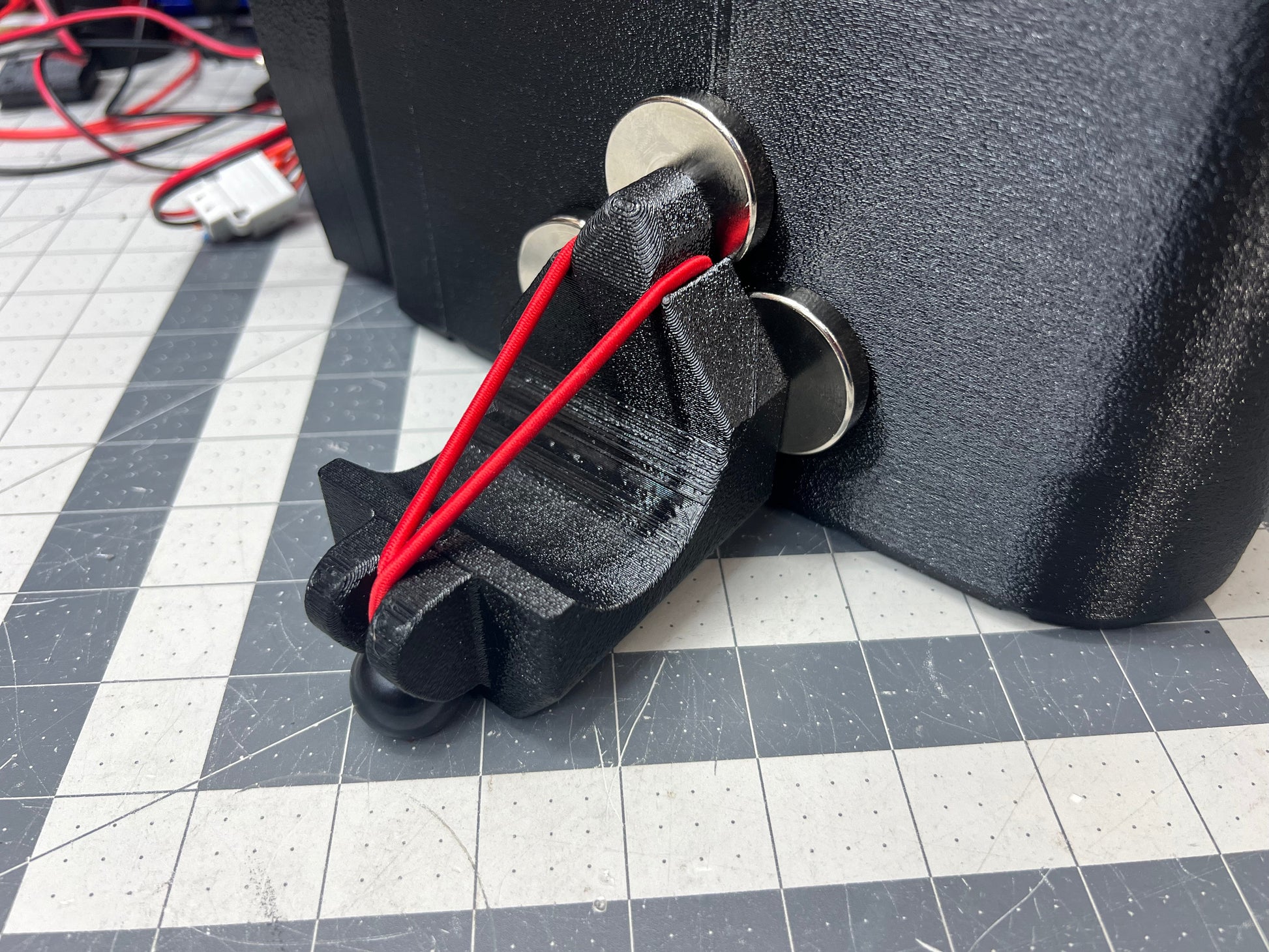 Holds a grease gun by the handle. Confirmed to fit M18 grease gun and dewalt