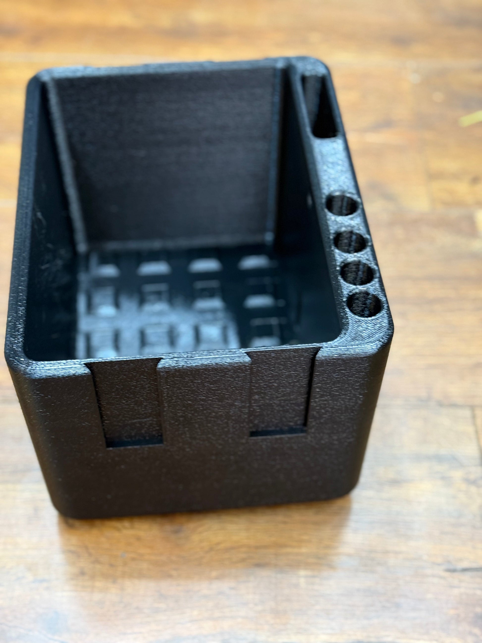 Holds 4 pens. or a few bolts. or anything long and narrow.