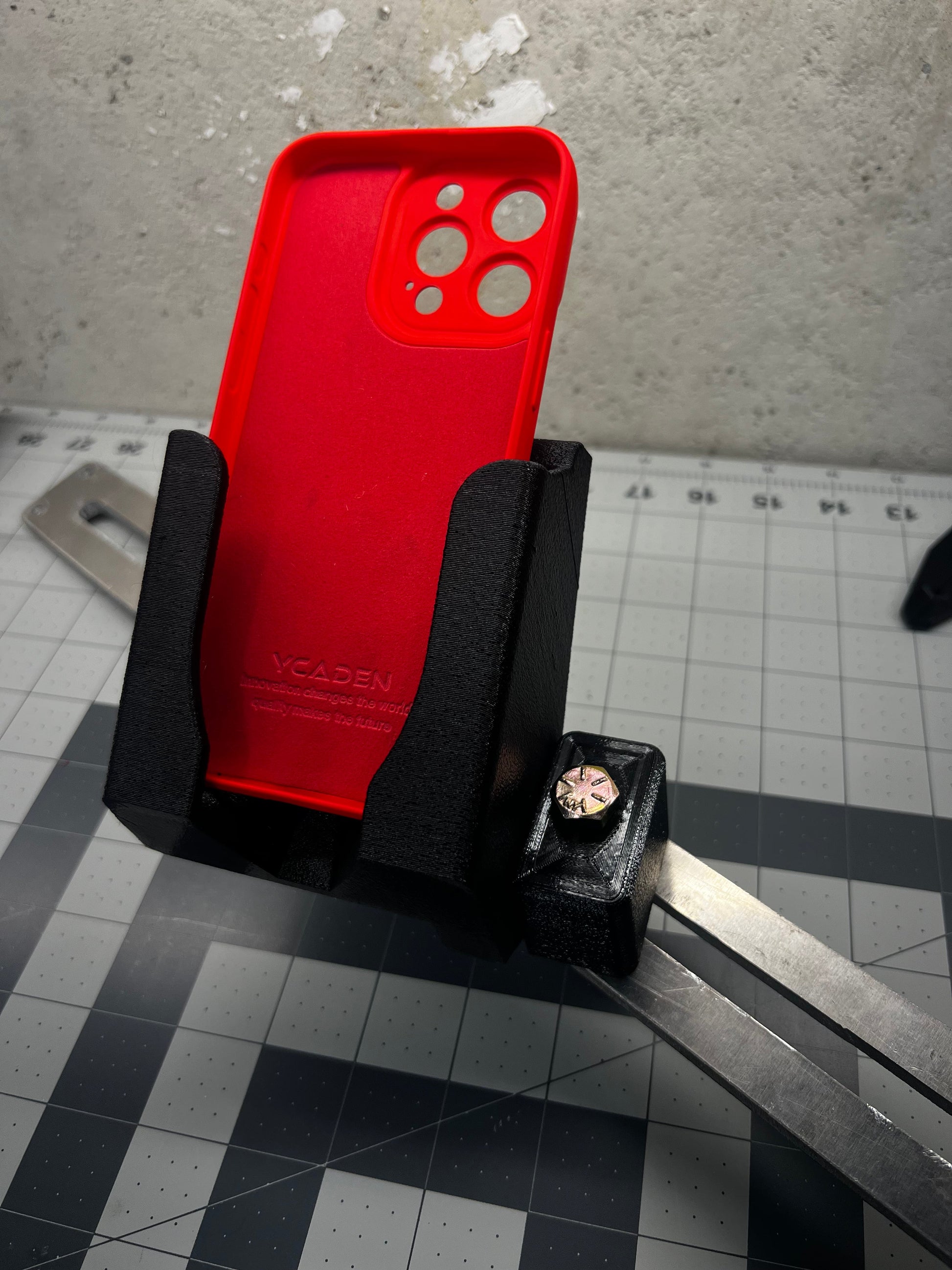 Can use up to a 3/8" bolt to secure the phone mount on the slotted monitor bars.