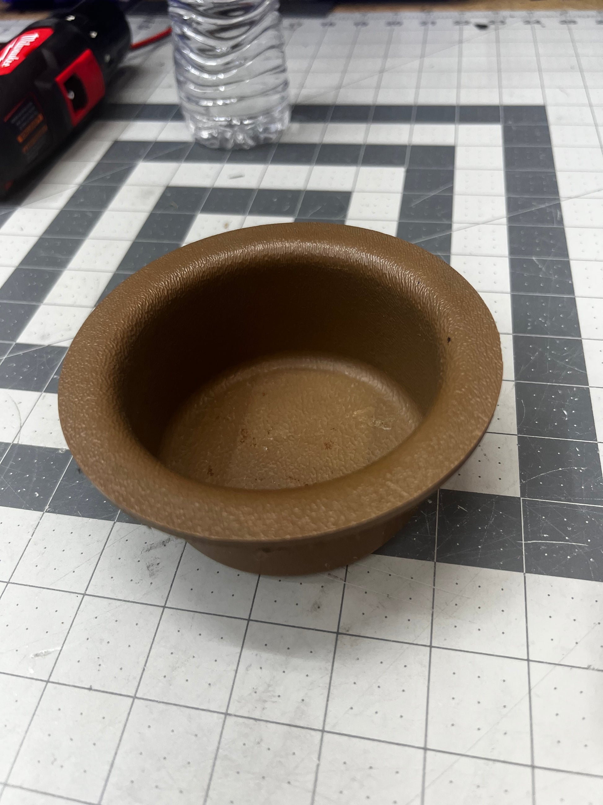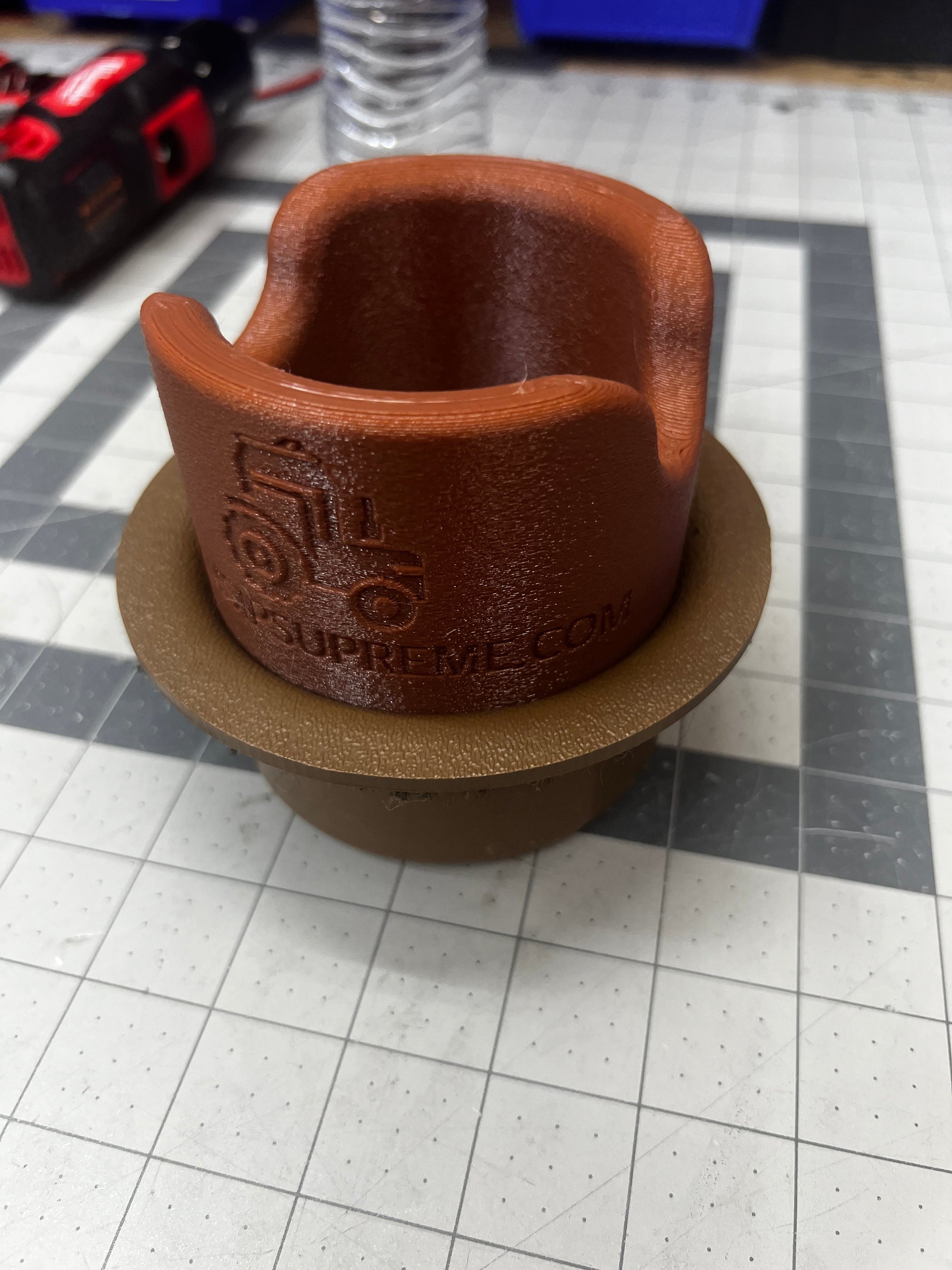 Slips into the OEM cup holder and actually holds the pop can or bottle of water.