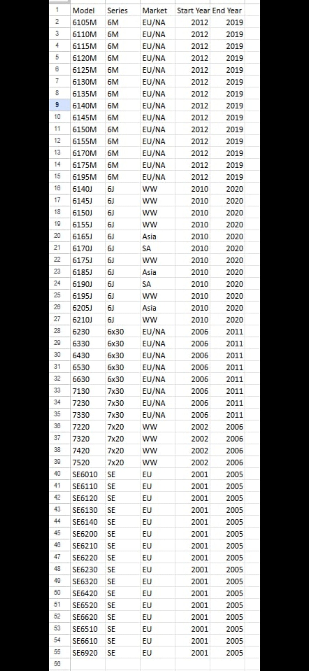 6105M, 6110M, 6115M, 6120M, 6125M, 6130M, 6135M, 6140M, 6145M, 6150M, 6155M, 6170M, 6175M, 6195M