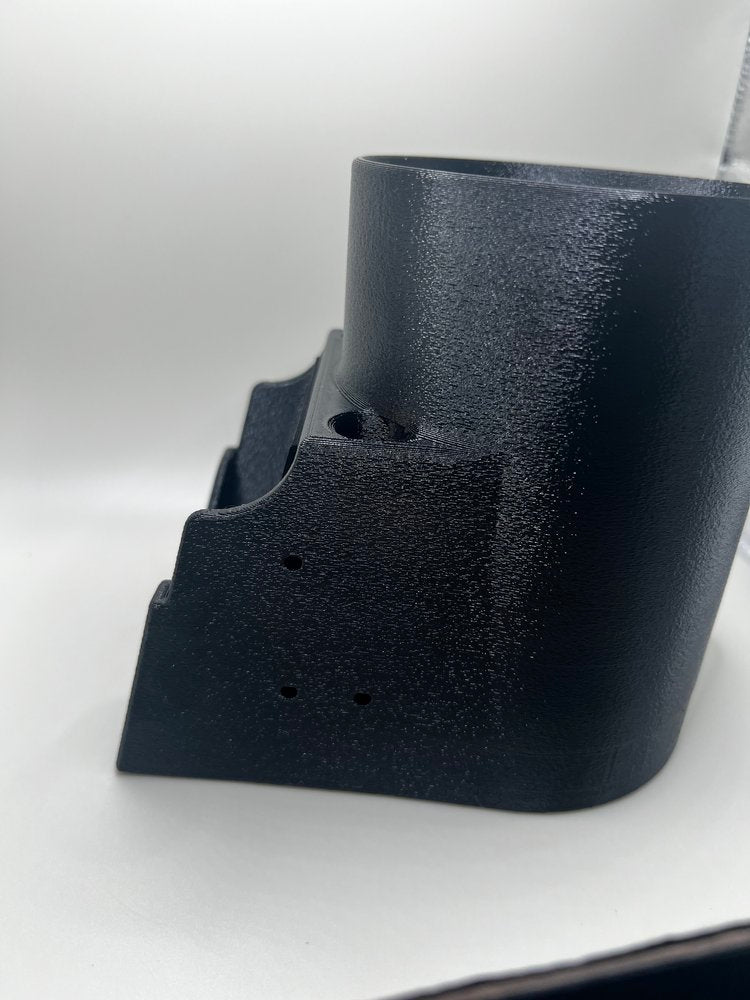 Another cuppy edition. This one holds your depth gauge in a built-in pocket on the left side. The drink hole is sized to hold up to 3.75” diameter beverage containers. Standard 2 pen holders as well.